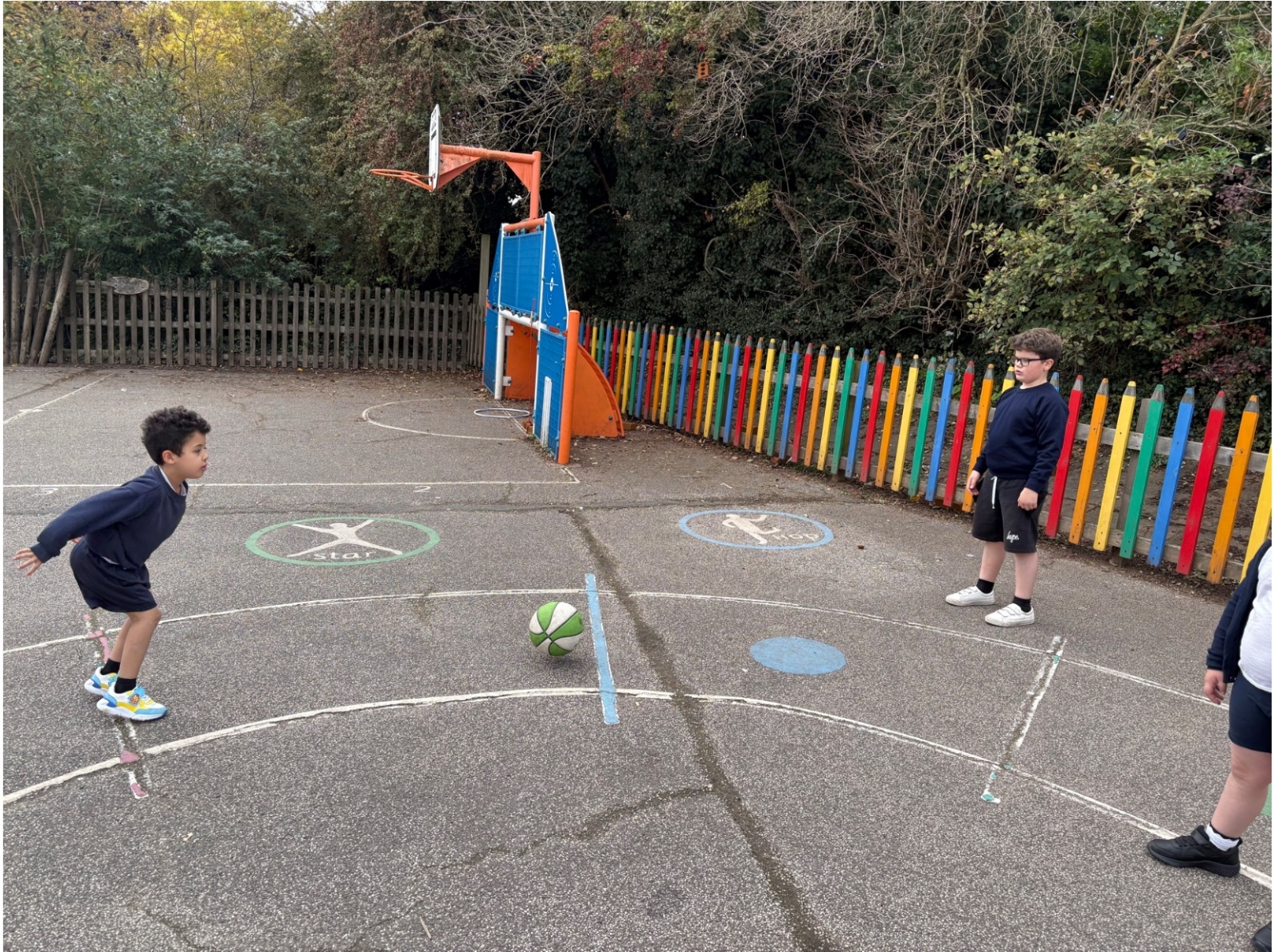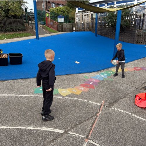 Key Stage One have been enjoying practising their passing skills in basketball.